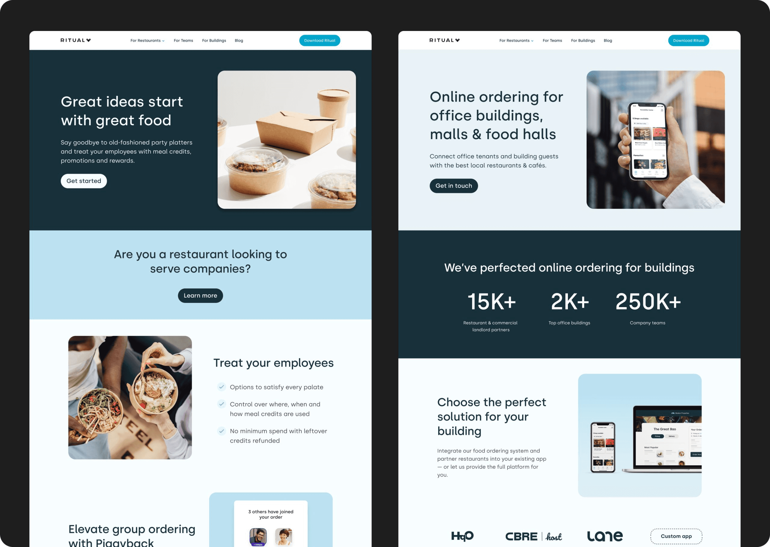 At Ritual Technologies Inc, I led brand design with a close-knit team, driving a brand refresh, website redesign, and brand campaign. From our colour palette to storyboarding, every detail was infused with authenticity. Our campaign wasn't just about marketing; it was about genuinely connecting with restaurants and our customers, staying true to our values of transparency and community throughout.